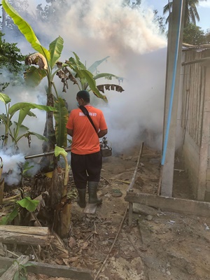 วันที่ 3 มกราคม 2568 เวลา 07.00 น. พนักงานองค์การบริหารส่วนตำบลแม่ดงพร้อมด้วยอาสาสมัครสาธารณสุขประจำหมู่บ้าน (อสม.) ดำเนินการฉีดพ่นหมอกควันกำจัดยุงลาย เพื่อควบคุมการระบาดของโรคไข้เลือดออก ในพื้นที่บ้านจือแร หมู่ที่ 1 ตำบลแม่ดง อำเภอแว้ง จังหวัดนราธิวาส