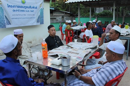 โครงการรอมฎอนสัมพันธ์ ประจำปีงบประมาณ 2569 หมวด: ข่าวกิจกรรม วันที่ 15 มีนาคม 2569 นางฮามือละห์ ลาเต๊ะ นายกองค์การบริหารส่วนตำบลแม่ดง พร้อมด้วยผู้บริหาร สมาชิกสภาฯ ผู้นำศาสนา ผู้นำชุมชน ข้าราชการ พนักงาน และประชาชนในพื้นที่ร่วมละศีลอด ณ มัสยิดยาดีด หมู่ 2 ตำบลแม่ดง อำเภอแว้ง จังหวัดนราธิวาส