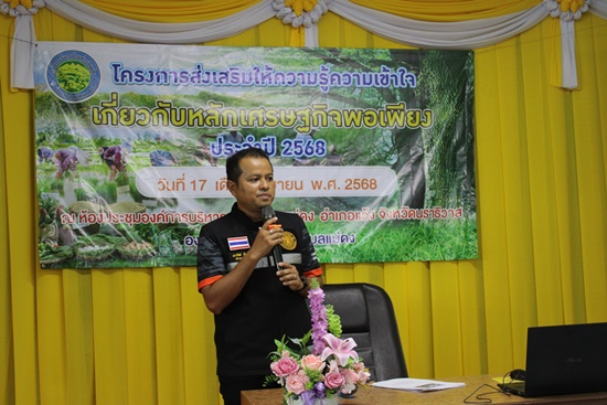 วันที่ 17 กันยายน 2568 เวลา 09.00 น. นางฮามือละห์ ลาเต๊ะ นายกองค์การบริหารส่วนตำบลแม่ดง ได้มอบหมายให้นายนาเซ อารง เลขานุการนายกองค์การบริหารส่วนตำบลแม่ดง เป็นประธานในพิธีเปิดโครงการส่งเสริมให้ความรู้ ความเข้าใจเกี่ยวกับหลักเศรษฐกิจพอเพียง ประจำปี ๒๕๖8 พร้อมด้วย สมาชิกสภาฯ ข้าราชการ และพนักงานจ้างองค์การบริหารส่วนตำบลแม่ดง ณ ห้องประชุมองค์การบริหารส่วนตำบลแม่ดง อำเภอแว้ง จังหวัดนราธิวาส
