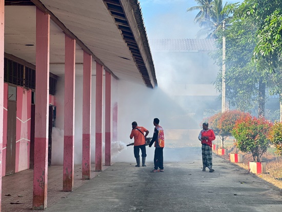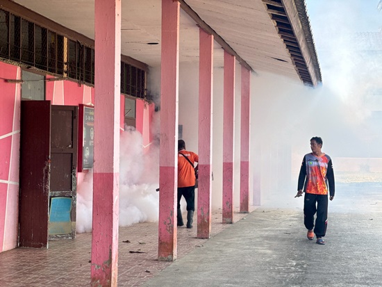 วันที่ 30 ตุลาคม 2568 เวลา 07.00 น. พนักงานองค์การบริหารส่วนตำบลแม่ดงพร้อมด้วยอาสาสมัครสาธารณสุขประจำหมู่บ้าน (อสม.) ดำเนินการฉีดพ่นหมอกควันกำจัดยุงลาย เพื่อควบคุมการระบาดของโรคไข้เลือดออก ณ โรงเรียนบ้านยะหอ และศูนย์การศึกษาพิเศษ ตำบลแม่ดง อำเภอแว้ง จังหวัดนราธิวาส