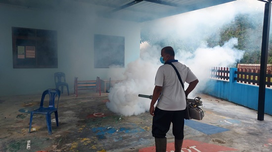 วันที่ 1 พฤศจิกายน 2568 เวลา 07.00 น. พนักงานองค์การบริหารส่วนตำบลแม่ดงพร้อมด้วยอาสาสมัครสาธารณสุขประจำหมู่บ้าน (อสม.) ดำเนินการฉีดพ่นหมอกควันกำจัดยุงลาย เพื่อควบคุมการระบาดของโรคไข้เลือดออก ณ โรงเรียนนิคมสร้างตนเองแว้ง โรงเรียนบ้านตอแล และศูนย์พัฒนาเด็กเล็กบ้านจะมาแกะ ตำบลแม่ดง อำเภอแว้ง จังหวัดนราธิวาส